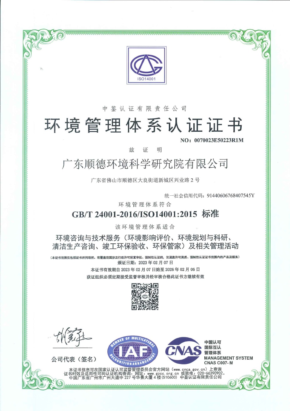 廣東順德環境科學研究院有限公司成立于1986 年,為全國首家由事業單位轉制的環境技術咨詢機構,為廣東省首批獲得原環評資質的單位之一。經過多年發展,我院業務范圍已涵蓋環境規劃與科研、環境影響評價、竣工環保驗收調查、環境檢測、環境事件應急預案編制、環保管家服務、國家排污許可證申領與維護、土壤污染狀況調查、水質高光譜遙感監測、清潔生產審核咨詢、危險廢物鑒別、環境工程監理、節能評估等等,是一家環境綜合咨詢服務企業。[更多]